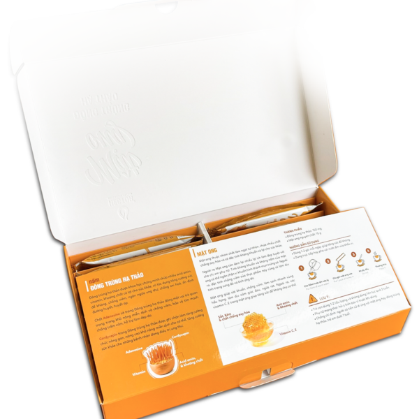 THÀNH PHẦN: Bột nấm Đông trùng hạ thảo 150mg, Mật ong nguyên chất 15g, không chất bảo quản